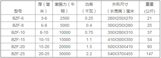 BZF系列倉壁振動器技術(shù)參數(shù):