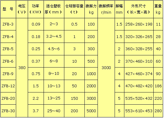 產品概述:ZFB系列防閉塞裝置(也稱倉壁振動器)是一種直接安裝在料倉下的新型破拱設備.該機是利用振動電機高速旋轉產生的離心作用而產生高頻振動