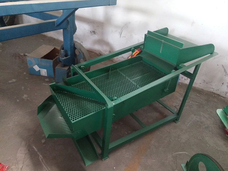 王先生此次訂購的小篩子,主要是用來清理韭菜籽里面的雜質(zhì)塵土,經(jīng)過篩分的菜籽用于包裝售賣。這種簡易型的篩子,不僅可以用于韭菜籽除雜,還可用于小麥、稻種、高粱、芝麻、豆子等農(nóng)作物的除雜,應用范圍廣泛,是個體種植戶的用于谷物除雜的好幫手。本機主要是由電機、風機、進出料口、篩面、大架等部件構成,物料進入料斗后,流入篩面上,經(jīng)過兩層篩分,大雜、秸稈左端出料口篩出,成品料從前端大出料口出來,小于物料的癟子、塵土、小石子等從右端出料出來,這就完成了整個工作過程。具有移動方便、操作簡單、工作效率高、能耗低、可節(jié)省70%的人工,是理想的家用型除雜篩。
