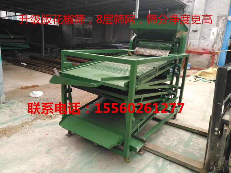 我們的花椒清選篩廣泛用于個體椒農(nóng)、調(diào)味品批發(fā)行、火鍋料場等行業(yè),是四川、重慶、云南、貴州、甘肅、陜西等花椒產(chǎn)地的理想設(shè)備,深受廣大用戶的青睞。清選花椒時只需把烘干后的花椒放進料斗,通過粉碎把花椒的枝葉殼籽分離開,所得混合物料通過下料器落到篩面上篩選,一層是雜質(zhì),像梅花椒、大的椒枝葉等;二層是椒籽以及和籽大小一樣的殼;三層是再次過篩,四層是成品椒殼,每層的底篩篩出來的都是椒枝和葉,相對人工篩選來說,非常的省時省力,篩選凈度也高,產(chǎn)量也大。