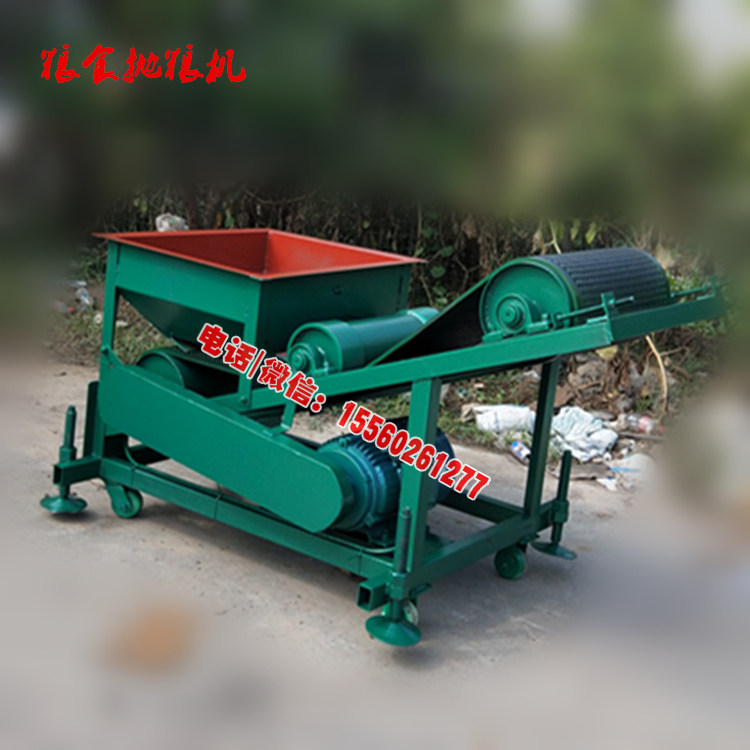 揚(yáng)場機(jī)由大架、進(jìn)料斗、電機(jī)、支撐絲桿、傳動輪、拋糧帶、壓帶輪等部件構(gòu)成,用于玉米、小麥、蕎麥、稻種、黃豆、綠豆等顆粒狀物料的除雜,糧食谷物進(jìn)入料斗后在高速運(yùn)轉(zhuǎn)下迫使物料向前上方運(yùn)動由皮帶送出,皮帶為特殊加工的多坑圓點(diǎn)輸送帶,具有定向作用,便于糧食的收集,根據(jù)物料及雜質(zhì)比重的不同,分別將其堆成堆。