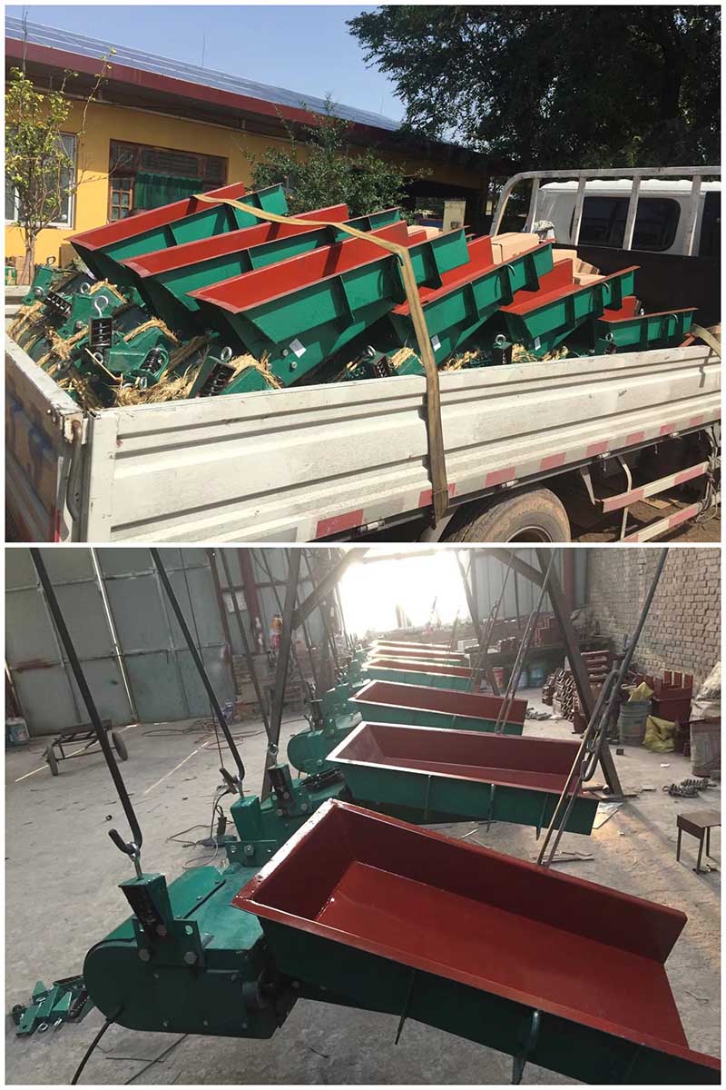 GZ3電磁振動給料機是比較常用的敞開式振動給料機,工作時吊掛在料倉下面,把料倉里面的粉狀、粒狀、塊狀散體物料通過料槽振動的方式均勻的給到受料設(shè)備中,湖南益陽王經(jīng)理是把物料從料倉給到振動篩中,之前都是料倉里面的物料直接流入振動篩進料斗,這樣造成了篩分不均勻,經(jīng)同行推薦在料倉和皮帶機加一臺電磁振動給料機,可以把料倉里面的物料均勻連續(xù)的給到振動篩中,這樣保證了篩分的均勻度,根根據(jù)王經(jīng)理產(chǎn)量需求,推薦用我們的GZ3電磁振動給料機,料槽尺寸:400*900mm(寬*長),有效功率:0.2KW,生產(chǎn)量:25t/h,如需加大產(chǎn)量可將料槽下傾10度,產(chǎn)量可達35t/h,供電電壓:220V,控制器:5A。