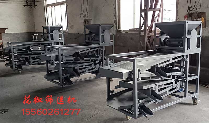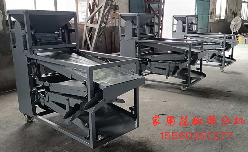 小型花椒清選篩替代了人工篩選的繁重工作,啟動(dòng)電機(jī)后直接把物料投放到進(jìn)料斗,進(jìn)料斗的刺棍轉(zhuǎn)動(dòng)把毛花椒的把和枝葉籽分離開(kāi),落到篩面上篩選,一層篩選出來(lái)的是梅花椒和大的花椒枝葉,二層是花椒米,三層進(jìn)行復(fù)試篩選,四層篩選出來(lái)的是成品花椒殼,就完成了整個(gè)運(yùn)行程序。根據(jù)用戶產(chǎn)量需求不同,我們還有時(shí)產(chǎn)1000斤,和時(shí)產(chǎn)二三百斤的花椒篩選機(jī)可選。
