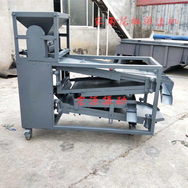 花椒篩選機可用于青花椒和紅花椒的打把脫粒篩選,烘干后的毛花椒直接放進花椒機進料斗分離,分離后的花椒枝葉殼籽混合物料落到篩面上篩選,分別把花椒枝葉、花椒殼、花椒籽分別篩選出來,替代了人工篩選花椒的繁瑣工作,具有操作簡單,篩選速度快凈度高,工作能耗低,連續(xù)工作時間長等特點。